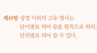 둘 이상의 단어가 결합하여 이루어진 고유 명사는 단어별로 띄어 쓰는 것을 원칙으로 하되, 단위별로 붙여 쓸 수 있습니다.