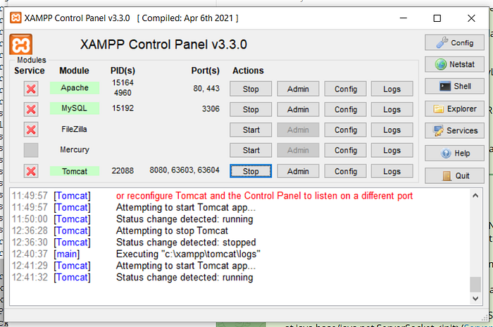 When i try to start tomcat in XAMPP Control Panel, it can’t be starting.