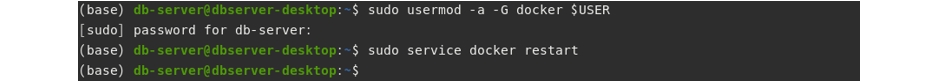 매번 도커 명령 앞에 sudo를 입력하면 번거롭다. root 권한이 아닌 호스트의 기본 유저에게도 사용 권한을 주도록 설정한다. 그리고 도커를 재시작(restart) 한다.