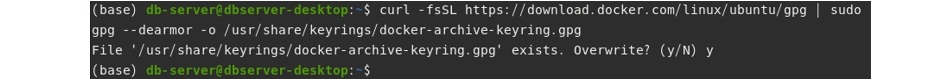 $ curl -fsSL https://download.docker.com/linux/ubuntu/gpg | sudo gpg --dearmor -o /usr/share/keyrings/docker-archive-keyring.gpg