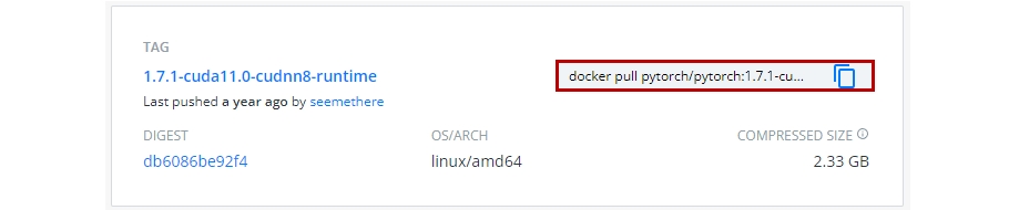 $ docker pull pytorch/pytorch:1.7.1-cuda11.0-cudnn8-runtime