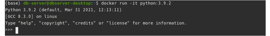 앞에서 이미지를 가져온 후, 명령을 입력하면 python 3.9.2 버전의 이미지를 확인할 수 있다.