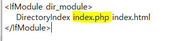 cmd 관리자 권한으로 열기 > C:\Apache24\bin\httpd.exe -k installapache24>conf>httpd.conf 파일에서 directoryIndex에 index.php 추가해주기 위의 httpd.conf파일 마지막 부분에