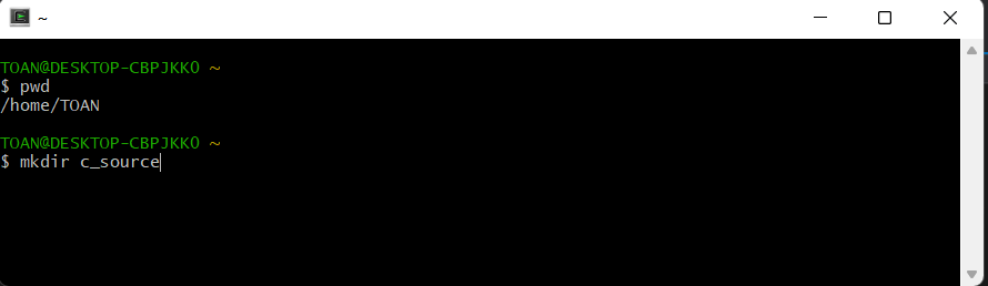 - c_source폴더 생성(mkdir : directory를 만드는 셀 명령어(