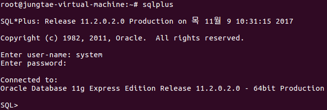21. 그런뒤 sqlplus로 오라클에 접속합니다.