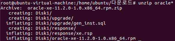 터미널에 unzip oracle* 라고 입력해주시면 됩니다.