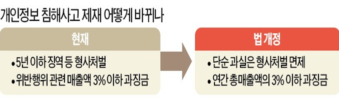 예를 들어, 현행 체재는 동의 없이 개인정보를 수집한 경우 온·오프라인 기업의 과징금이 달랐다. 하지만 본 개정안이 시행된다면 규정을 일원화하여 온·오프라인 기업을 망라하고 동일한 행위에 대해서는 동일한 규제를 적용할 것임을 밝혔다.