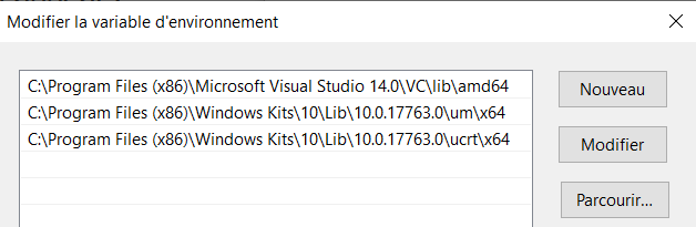 - Provide the remaining two paths of Environment / LIB for 64-bit project: