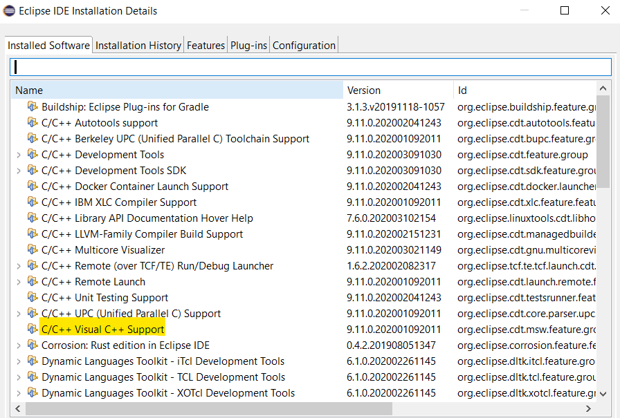 - The C/C++ Visual C++ support in Eclipse IDE
