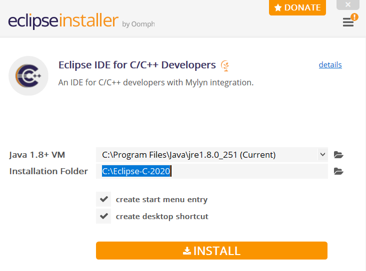 - Select Eclipse IDE for C/C++ Developers.