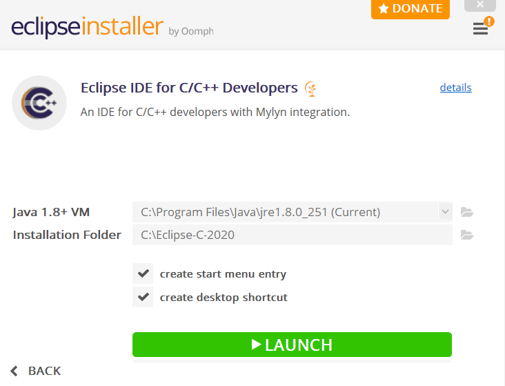 (2) Eclipse IDE for C/C++ Developers installation in Windows 10