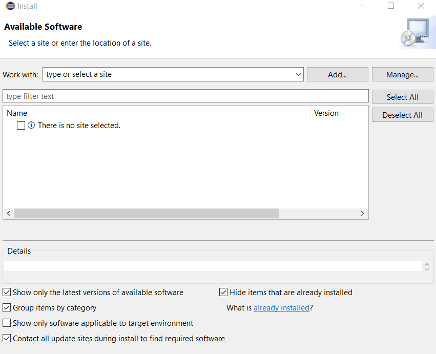 - In Work with, select All Available Sites.