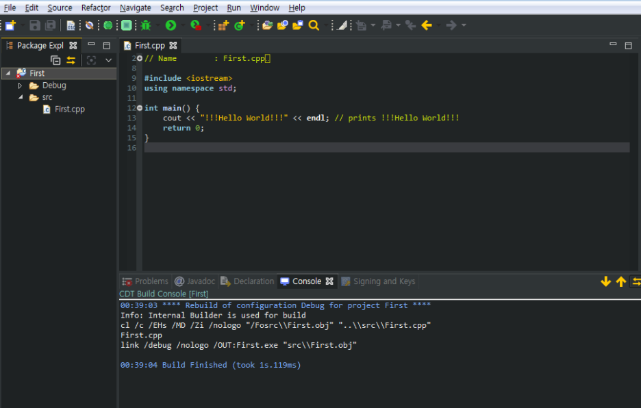 이렇게 만들어 진 소스를 컴파일 해 보면 이상 없이 컴파일 될것이다.