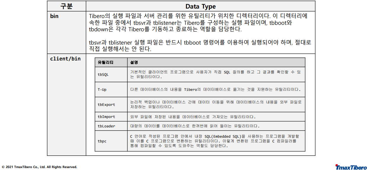 --------------------------------------------------------------------------------------------------------------------------------------------------------------- 4. Tibero Directory 구조