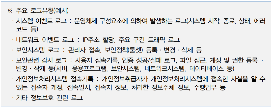 * 개인정보처리시스템에 대한 접속기록은 법적 요구사항을 준수할 수 있도록