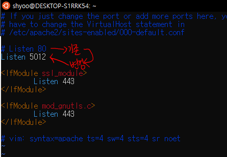 sudo vim /etc/apache2/ports.conf