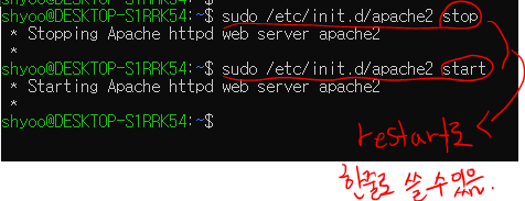 이제 설정이 변경되었으니, 아래와 같이 재시작을 한다.