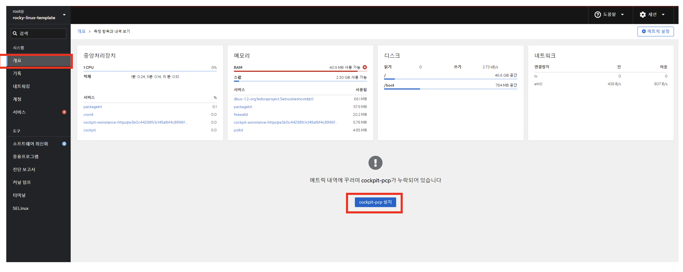 보다 자세한 Monitoring을 위해 cockpit-pcp를 추가로 설치해 주도록 할게요.