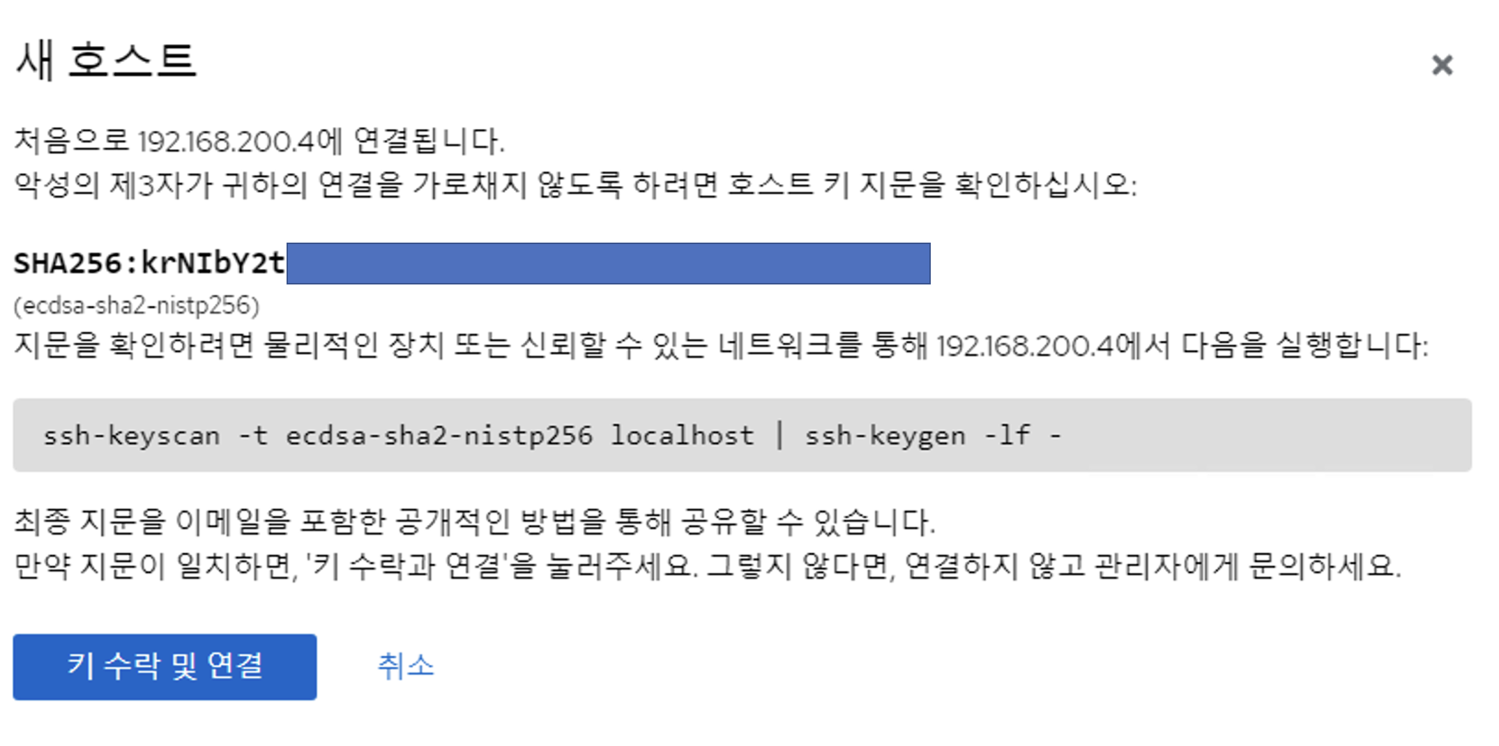 위와 같이 나오면 대상 서버의 계정 비밀번호를 입력해주고, 설정할 ssh key 비밀키 값을 입력해 줄게요.