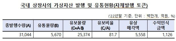 자체 발행한 물량 중 재유입을 통해 보유한 가상자산의 시장가치는 2천770억원 수준으로 추정했다. 재무제표 인식 금액은 621억원으로 나타났다.