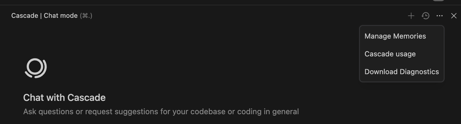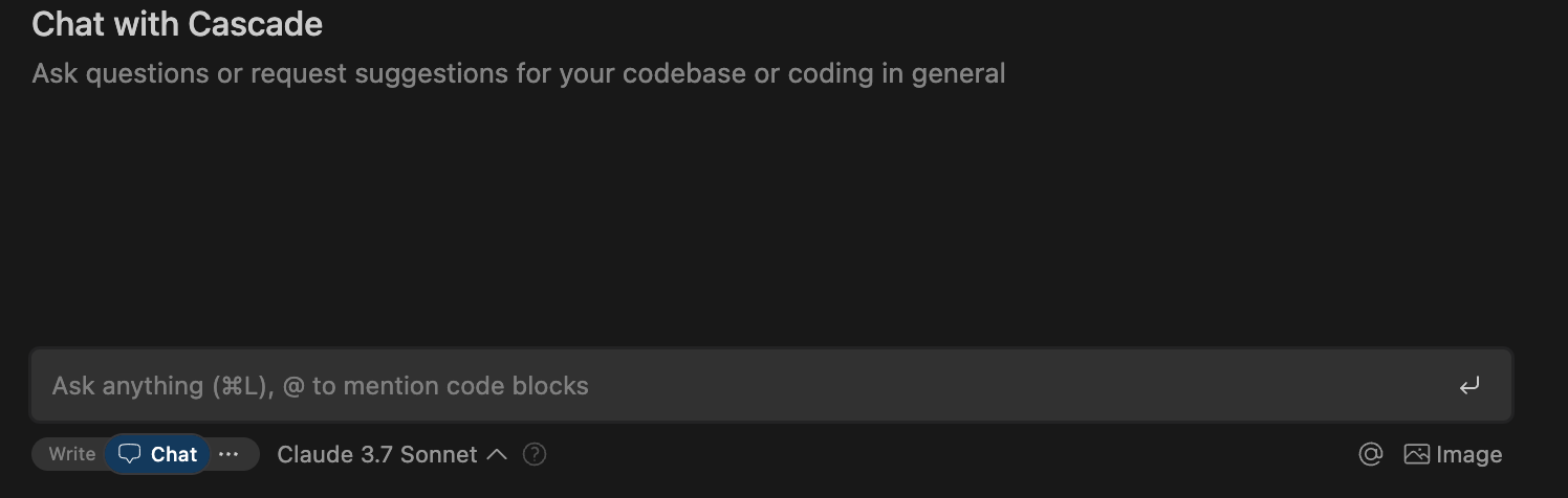 - Cascade : 프로젝트를 깊이 이해하는 AI 기반 어시스턴트 (오른쪽에 위치한 채팅 인터페이스)