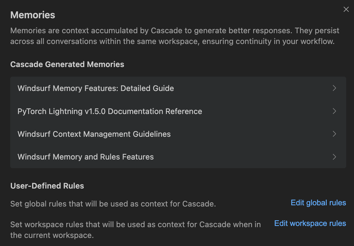 | Core Features | Beginner-Intermediate | Cascade Memories: Personalize Windsurf with Custom Rules | Creating and managing custom rules | Watch |