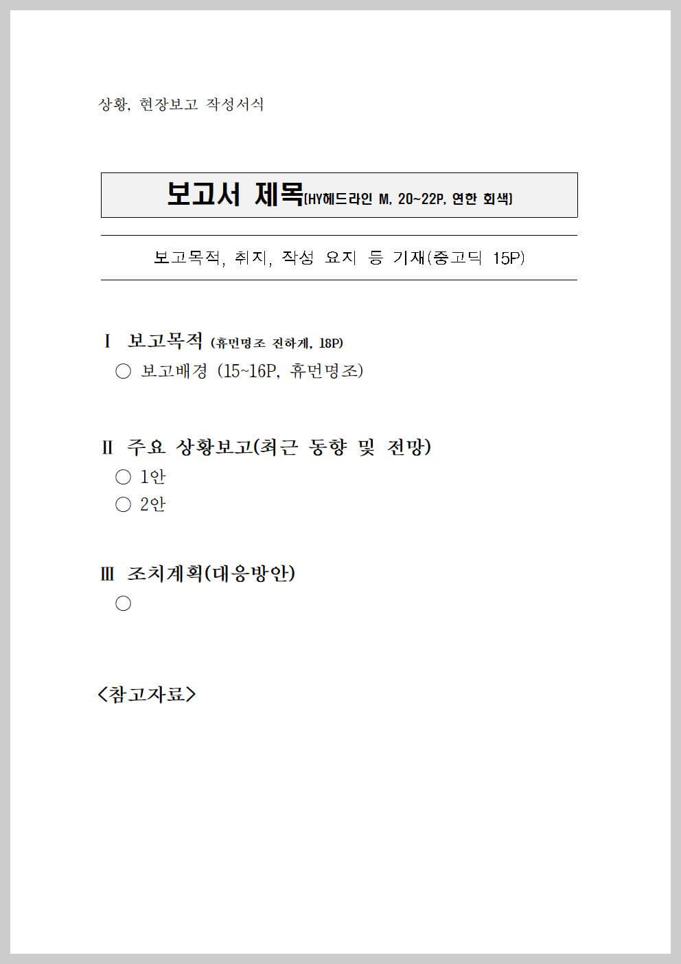 1) 공무원 보고서 본문 규격(예시)