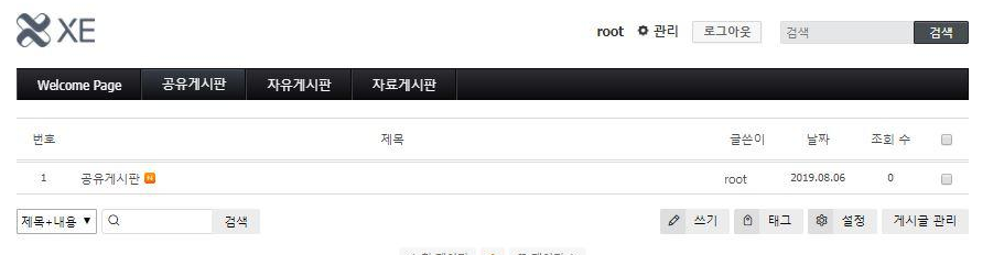 다음글에는 간단하게 게시판 어떻게 설정하는지까지에 대한 글 남기고 XE(Xpress Engine)에 대한 글을