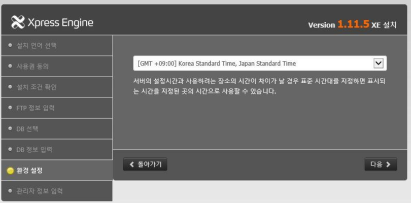 - 환경설정에서 한국 선택 후 관리자 정보 입력 하시면 완료입니다.