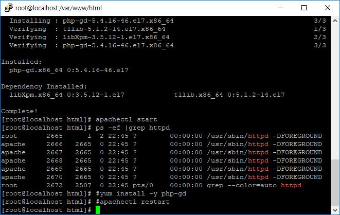 - 명령어 : yum install -y php-gd -> apachectl restart