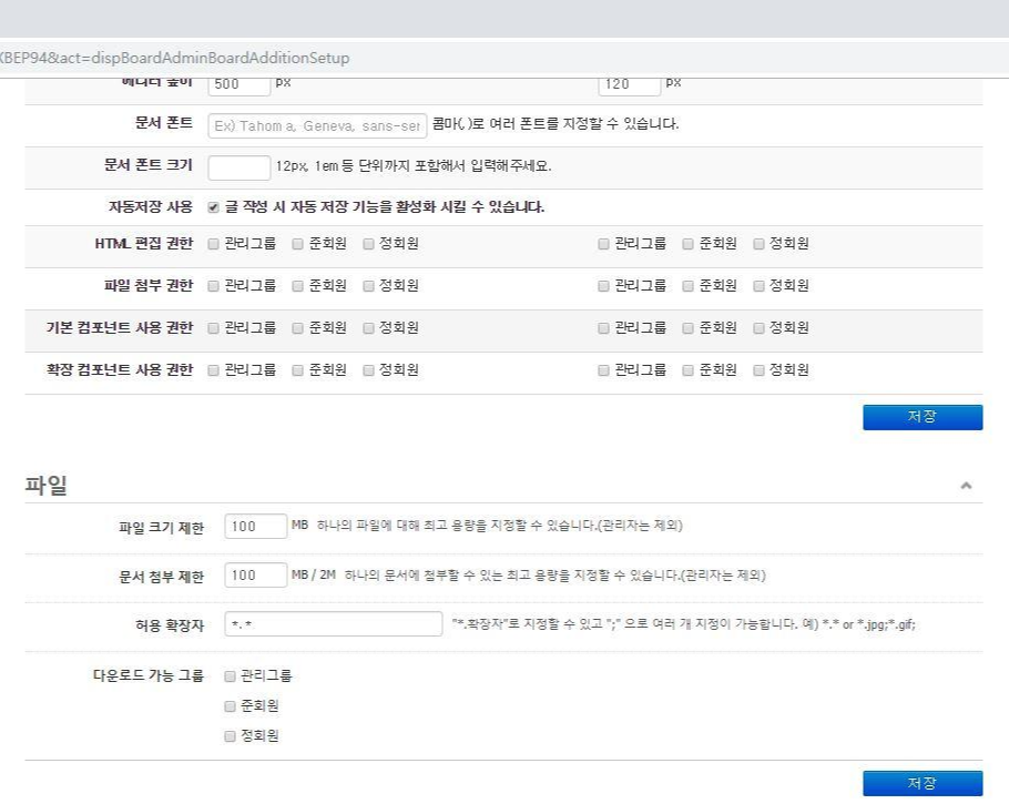 - 설정하고자 하는 게시판에 들어가셔서 [설정] 버튼 클릭