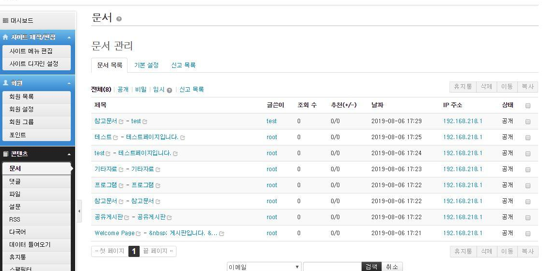 - 관리자 페이지에서 [문서]를 클릭하시면 현재 작성된 글을 확인할수 있습니다.ㅎㅎ