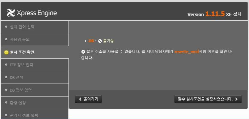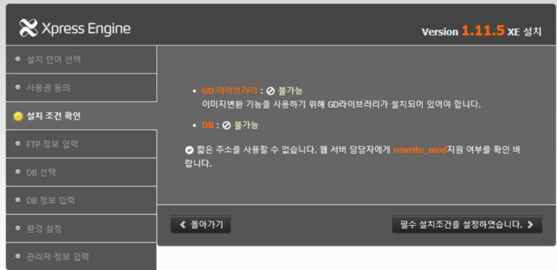 - 설치 조건 확인에서 GD 라이브러리 와 DB 불가능이라고 나오는데 당황하지 마시고