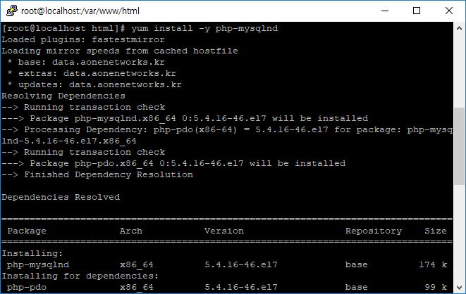 - 명령어 : yum install -y php-mysqlnd -> apachectl restart