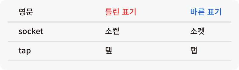 원어의 발음이 된소리일지라도 쌍자음으로 표기하지 않습니다. 예를 들어 'server'나 'service'는 '써버'나 '써비스'가 아닌 '서버'와 '서비스'로 표기합니다.