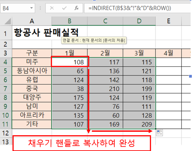 4) 이제 indirect 함수를 업무에서 활용해보겠습니다.