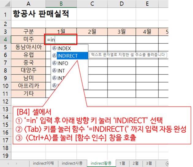 6) 그래서 indirect 함수를 사용합니다.