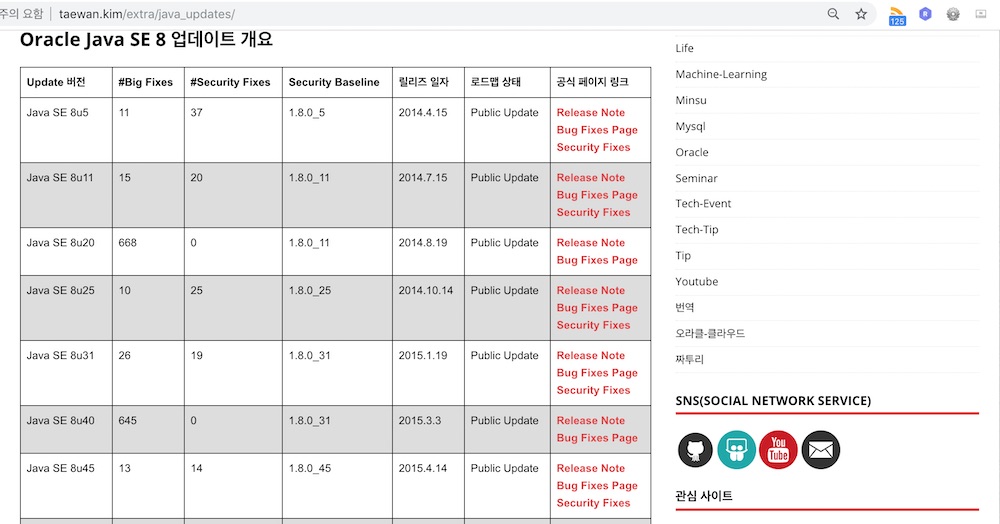 Oracle Java의 비공개/공개 버전 확인 방법과 이전 버전 사용에 대한 부분은 아래에서 다시 다루겠습니다.