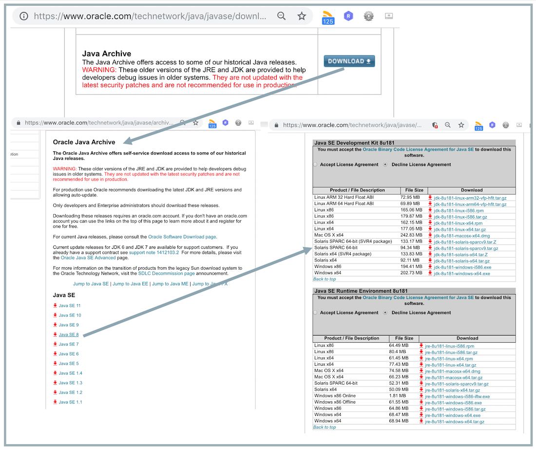 OTN에서는 Oracle Java 1.1 부터 Oracle Java 11까지 Oracle Java SE의 모든 업데이트 다운로드하는 Archive 페이지를 운영합니다. 2019년 1월 부터 OTN에서는 Oracle Java 공개 버전을 릴리즈하지 않을 것을 발표했습니다. 2019년 1월 이후에도 Oracle Java SE의 모든 업데이트 다운로드하는 Archive 페이지를 운영할 것인지를 문의하시는 경우가 있습니다. 아직 이 Archive 페이지를 계속 운영할 것인지 아니면 종료할 것인지 구체적으로 언급한 문서는 찾지 못했습니다. 제 개인적인 생각은 앞으로도 계속 운영될 것이라고 믿고 있습니다.