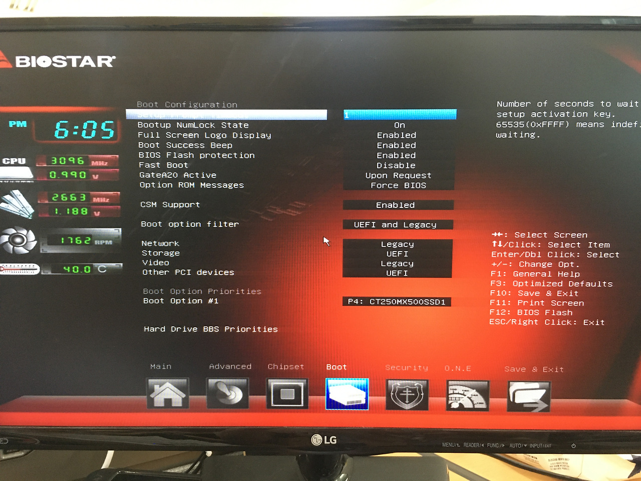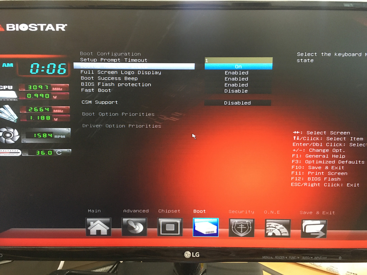 메인보드 수은 배터리를 교체하니 정상적으로 바이오스 설정이 저장되어 위 문제를 해결하였다.