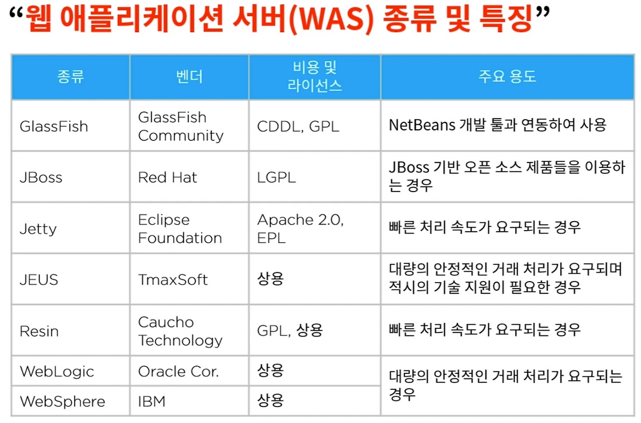 - 주요 사례 : 웹 어플리케이션 서버 ( WAS : Web Application Server )