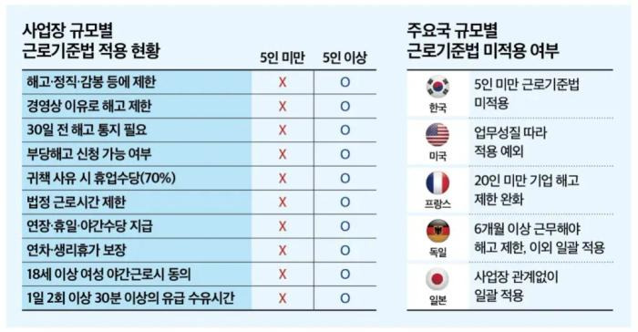 5인 미만 사업장에 적용되지 않는 근로기준법