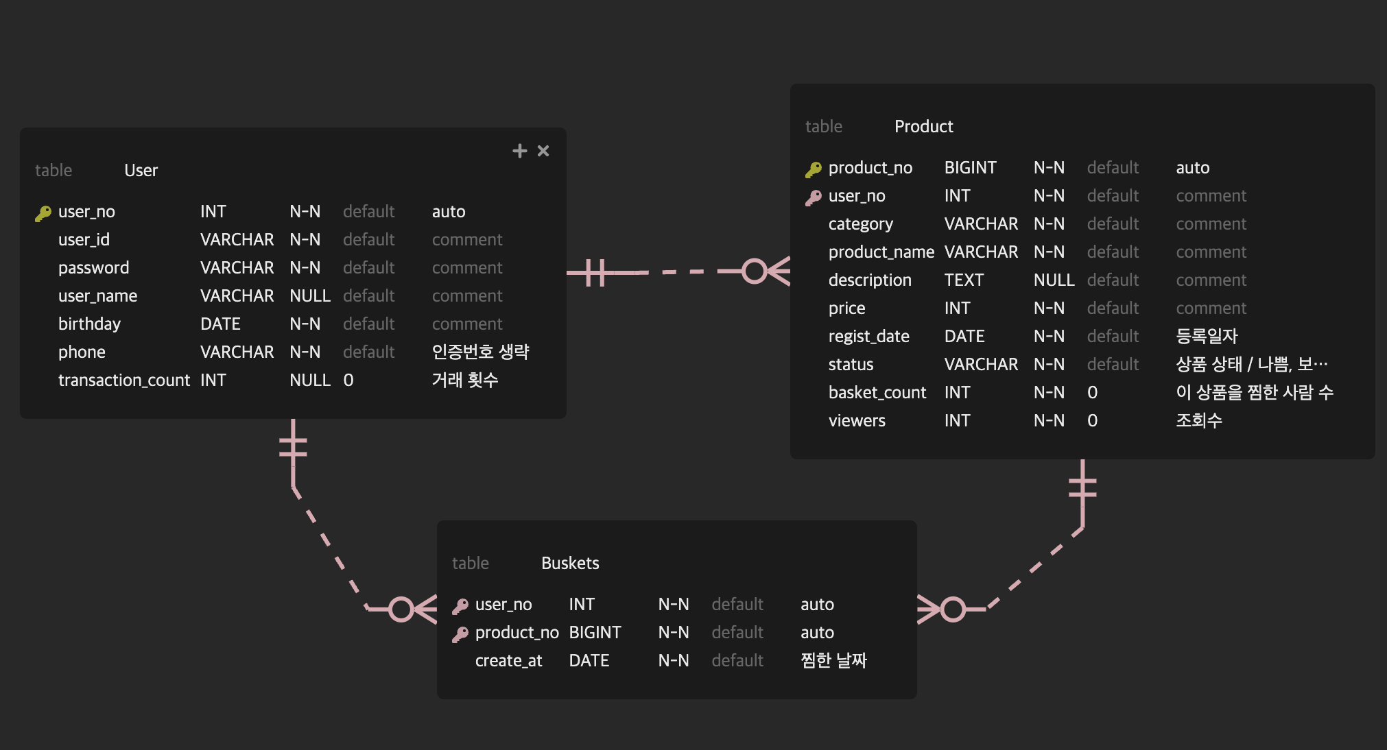 마지막으로, 아래 사진은 내가 지금 간단한 개인 프로젝트를 만들면서 ERD 를 그리고 있는 사진이다.