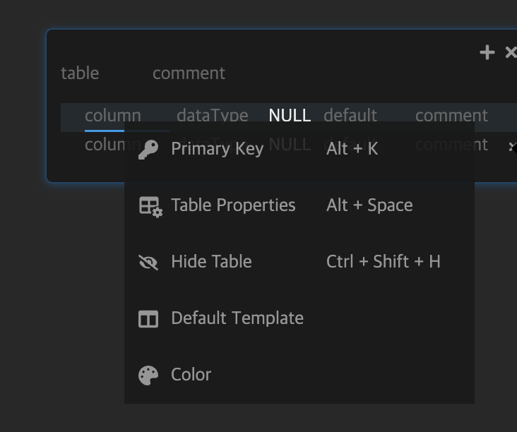 그리고 컬럼을 추가하고 싶다면 오른쪽 상단에 '+' 버튼을 클릭해주자.