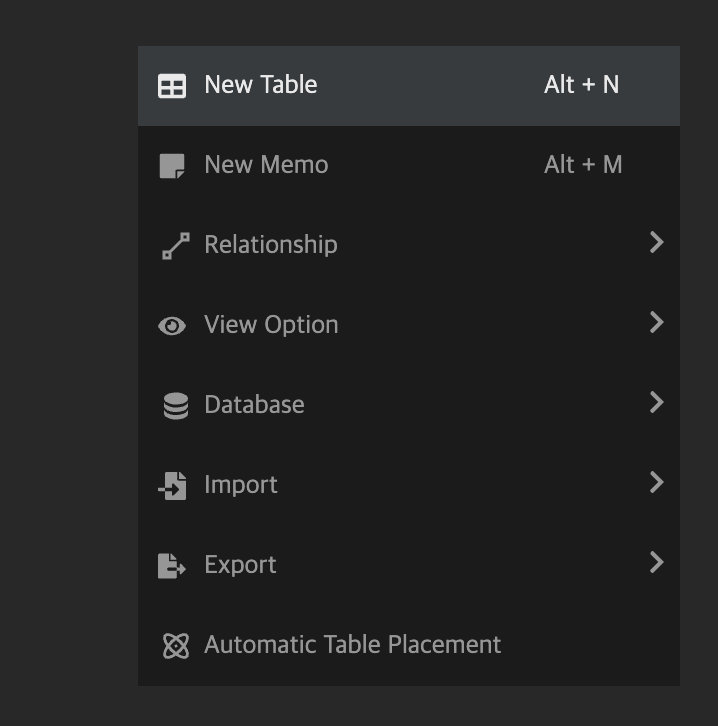 "New Table" 을 클릭하면 새로운 테이블을 생성할 수 있다.