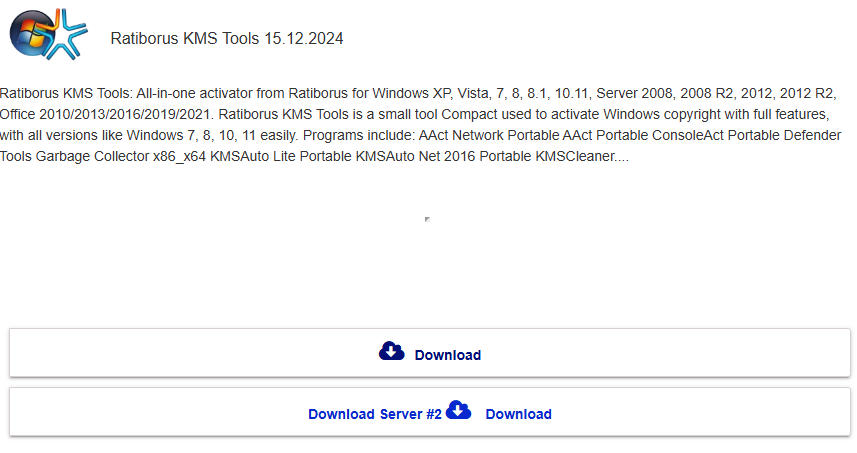 Ratiborus KMS Tools 가 가장 유명하며, 안정적이라고 알려저 있다. 아래에서 다운로드할 수 있다.