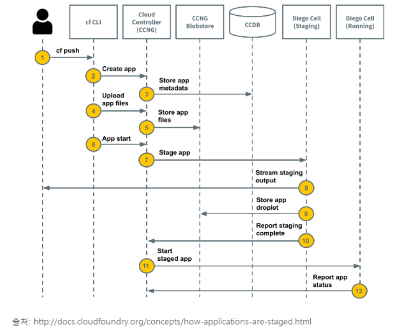 사용자가 cf push를 통한 application 배포 시