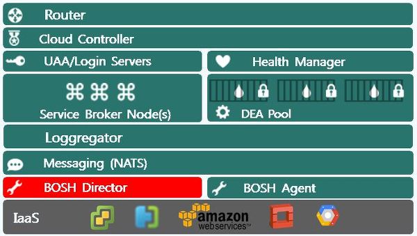 CloudFoundry의 컴포넌트들이 독립적이고 확장적인 구조이기 때문에 bosh를 통해 중앙에서 설치/관리/운영하게 됩니다.