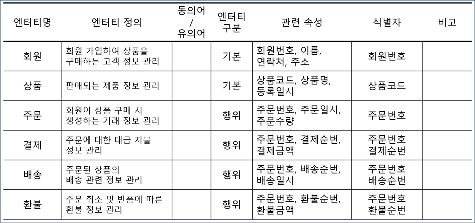 - [단계 2] <단계 1>에 핵심 엔터티를 추가 제시 하였을 경우