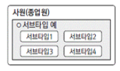 - 슈퍼타입 안에 서브타입을 상자로 표시 - 서브타입은 타입의 중복을 허락하지 않은 상호 배타적 관계 |